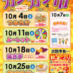 - 令和7年 10月のカンカン市こんにちは! まだまだ日中は暑さの厳しい日がありますが、朝晩が少し涼しく感じるようになりましたね!秋の味覚が楽しめる嬉しい季節ですが、季節の変わり目の体調には充分お気を付けくださいね♪ それでは、早速10月のカンカン市の […]