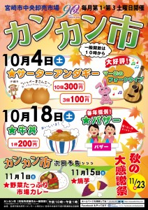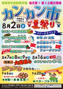 9月のカンカン市 2014年8月10日 最終更新日時 : 2025年9月29日 miyazakiichiba こんにちは! 8月も後半になりましたが、宮崎はまだまだ残暑が続きます! 9月も市場ではイベント盛りだくさんです 秋も目前ですが、今年最後の暑気払いを市場でいかがですか!? 美味しいものをたくさんご用意してお待ち致しておりまーす!!
