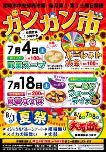 今月のカンカン市は、6日に餃子入り野菜スープとサーターアンダギーを販売します。野菜スープの餃子は、ラーメン屋台骨の特製餃子です!