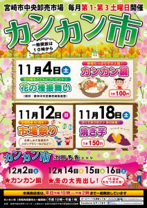 10月のカンカン市 2017年10月5日 最終更新日時 : 2025年9月29日 miyazakiichiba あんなに暑かった日々もすっかり落ち着き、秋の涼しい風が過ごしやすい季節になりましたね! 10月のカンカン市も楽しい!美味しい!をご準備していますよ~(^^♪ まずは、7日、食慾の秋にもってこいの旨味たっぷりヒムカの牛丼を一杯250円でご提供!! ダイハツ車の展示会もありますので、お車に興味のある方はぜひ! 21日は、野菜がた~っぷり入った焼きそばを200円でご提供しています♪ ご家族、お友達ををお誘いの上ぜひぜひカンカン市へ遊びに来てくださいね!(^^)!