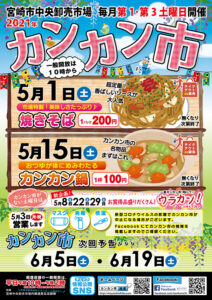 新型コロナウイルスの感染拡大の予防の為、令和3年5月15日㈯のカンカン市の開催を中止することが決定いたしました。