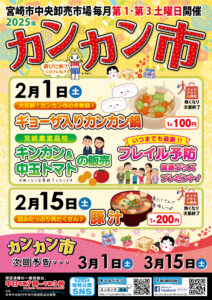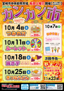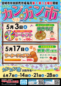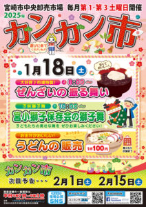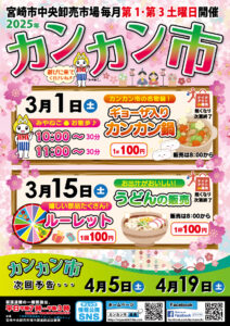 こんにちは! 寒さに弱~い宮崎人には厳しい寒さが続いていますね(>_<) 子供も大人も寒さに負けず2月のカンカン市で温かくておいしいものを食べにいらしてくださいね!(^^)! 早速ですが、令和7 […]