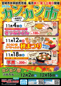 こんにちは! お待たせしました\(^O^)/久しぶりの「秋まつり」イベントが、ここ宮崎中央卸売市場にて開催されます! 2023 11/12(日) 朝9:00~13:00 ●ステー […]